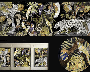Solution: We designed a tropical jungle mural with leopards and parrots, using sustainably sourced marbles and gemstones to craft a rich, textured focal point.