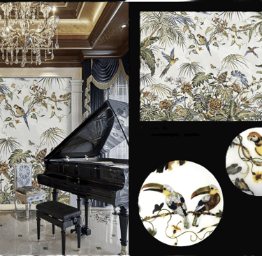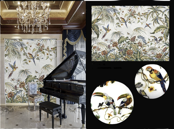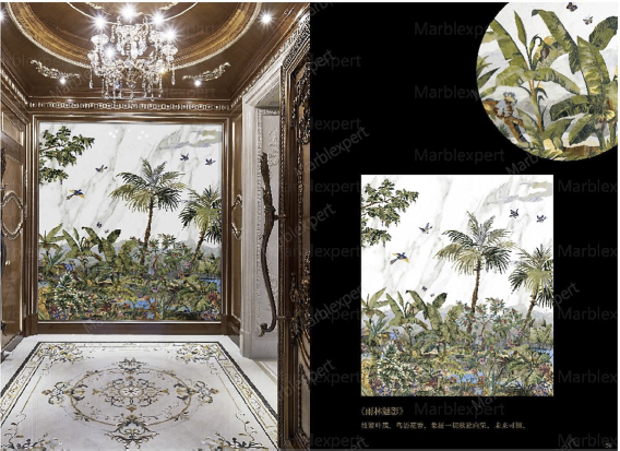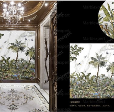 Title: Restaurant Enhancement: Tropical Jungle Marble Mural